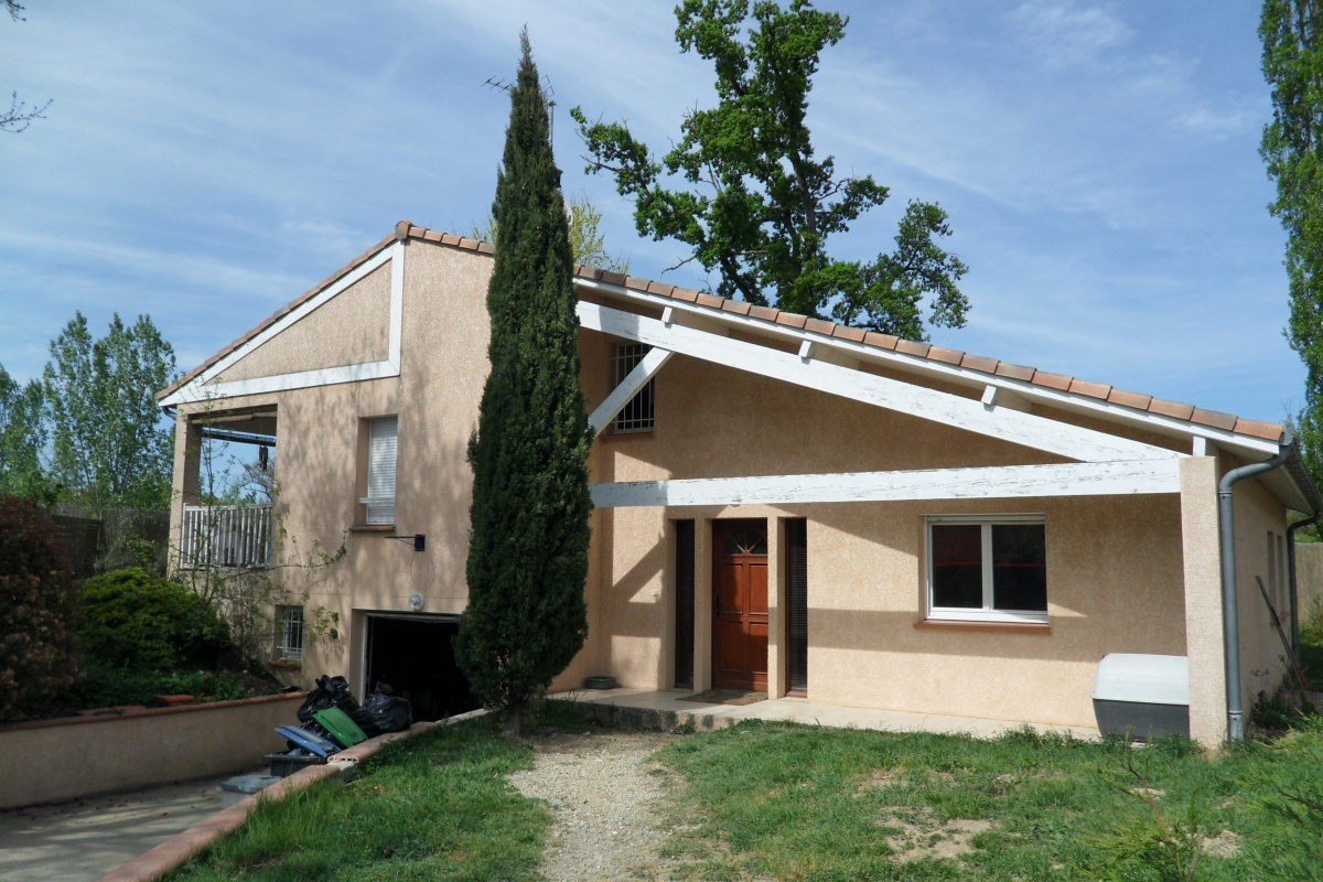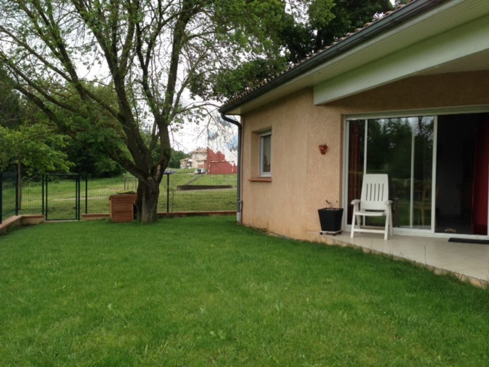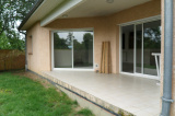 LEGUEVIN proximité lac - VILLA T4 d'env. 140 m² comprenant : une entrée avec placard, un séjour avec cheminée d'angle, une cuisine ouverte aménagée et équipée, un cellier avec placard, une mezzanine donnant sur le séjour, trois chambres avec placards, un dressing, une salle de bains complète (baignoire + douche), un WC séparé. Une terrasse carrelée, un grand garage en sous-sol d'env. 77 m².
