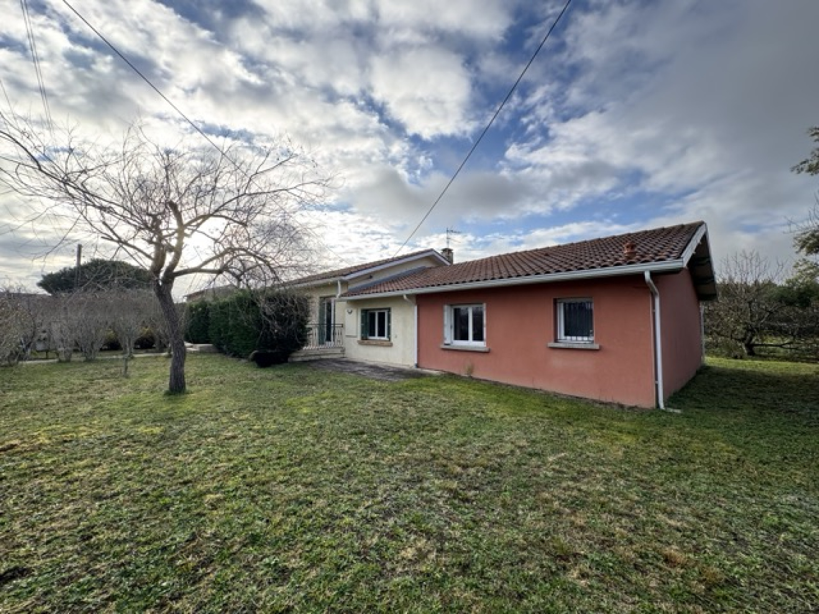 Saint-Lys : Dans une impasse calme et agréable, Villa 5 pièces de plain-pied comprenant un grand séjour, une cuisine séparée et aménagée, une salle à manger, une chambre parentale avec dressing et salle d'eau, 3 chambres, une salle de bains, 2 wc separés. Garage, jardin clos et arboré. Climatisation révesrsible. Terrasses. Ramassage scolaire à proximité.