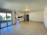 Appartement T3 d'env. 75 m² comprenant une entrée avec placard, un séjour, une cuisine ouverte aménagée, 2 chambres avec placards, une salle d'eau, un WC. Un cellier individuel, 2 places de stationnement, une terrasse couverte avec coin jardinet.