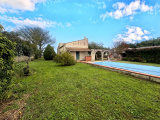 LEGUEVIN : Maison T4 de 100 m² sur un terrain d'environ 1300 m² comprenant : une entrée, un séjour de 29 m² avec cheminée insert, une cuisine séparée et aménagée, 3 chambres dont deux avec placards, un bureau, une salle de d'eau avec douche à l'italienne, un WC séparé. Menuiseries PVC double vitrage. Un garage d'environ 45 m², une piscine et un jardin clos et arboré.