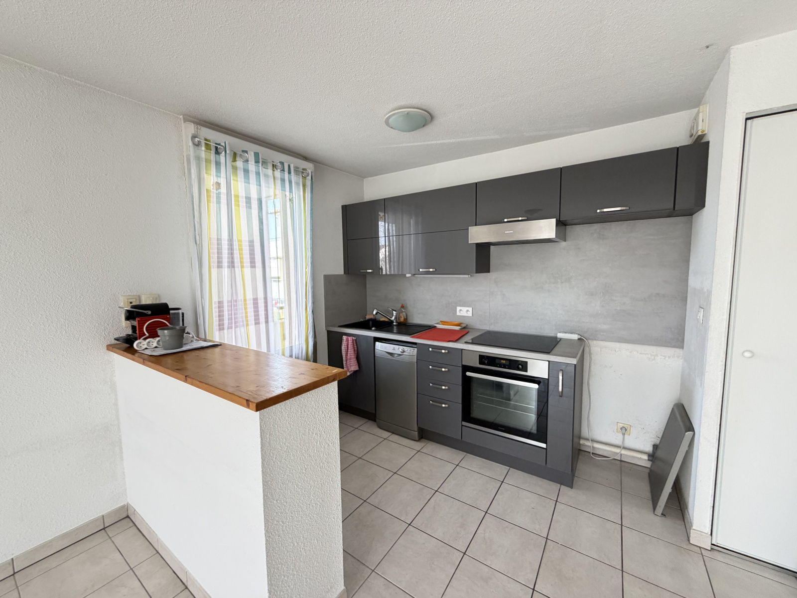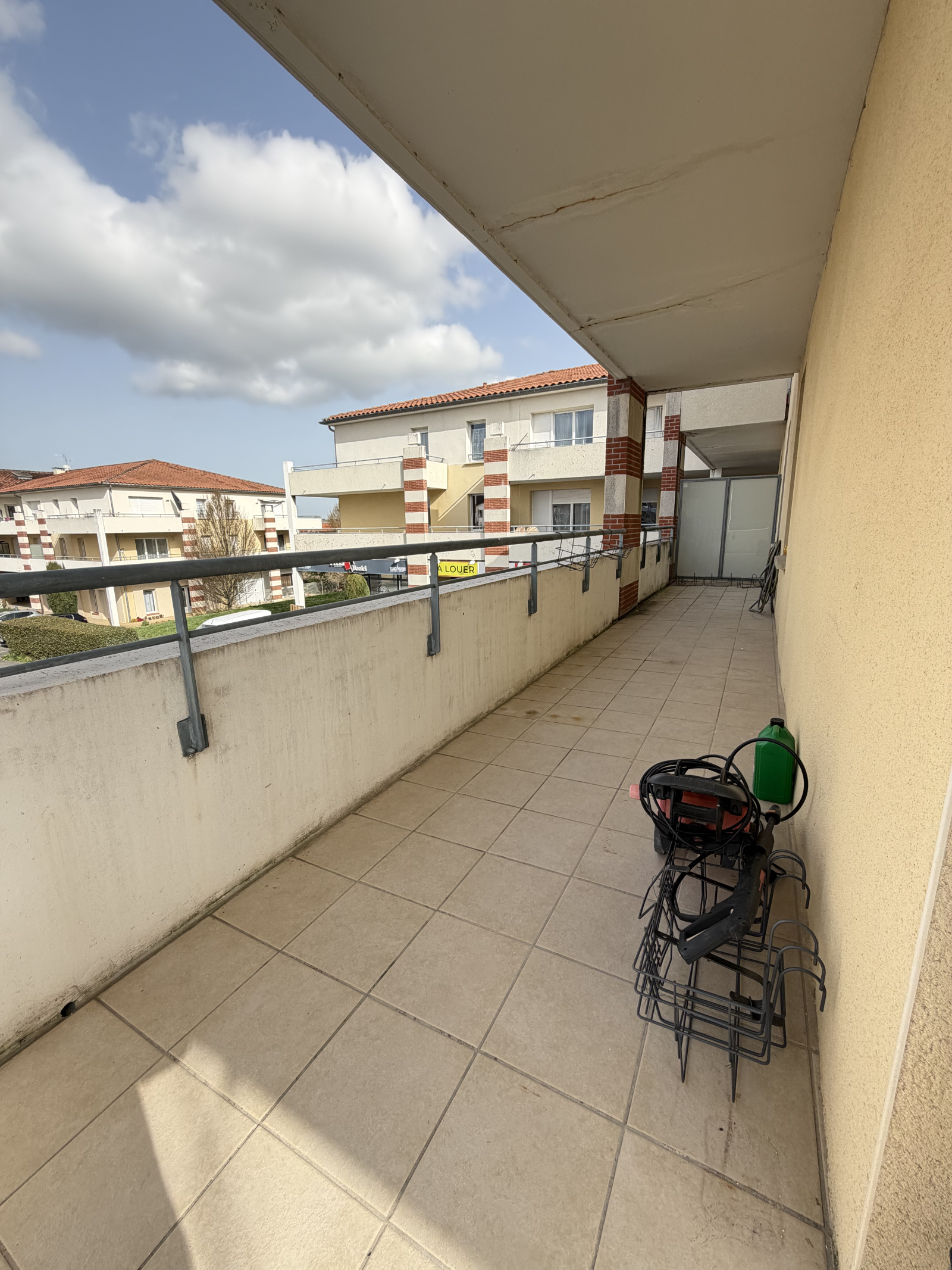L ISLE JOURDAIN : Appartement 3 pieces de 61 m2 avec grand balcon et 2 places de parking. Dans une copropriété du centre-ville proche des commerces et écoles, Appartement 3 pièces comprenant une entrée avec placard, un séjour donnant sur balcon, une cuisine ouverte équipée et aménagée, deux chambres avec placards, une salle d'eau avec grande douche et meuble vasque, un wc séparé. Un grand balcon d'environ 27 m2, deux places de parking. L'appartement est bien entretenu.